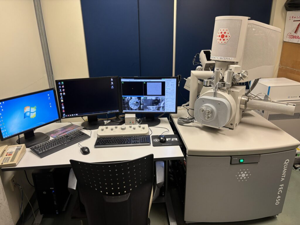 Description: FEI Quanta 450 FEG is an advanced Environmental Scanning Electron Microscope (ESEM) that uses a Field Emission Gun (FEG) for high-resolution imaging and analysis of a wide variety of materials.